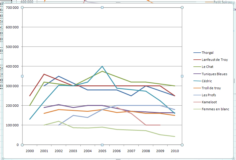 La sélection, j'ai omis Titeuf et Asterix car hors norme, et j'ai pris les "grosses séries" qui sont sorties régulièrement ces dernières années (on retrouve souvent les mêmes).