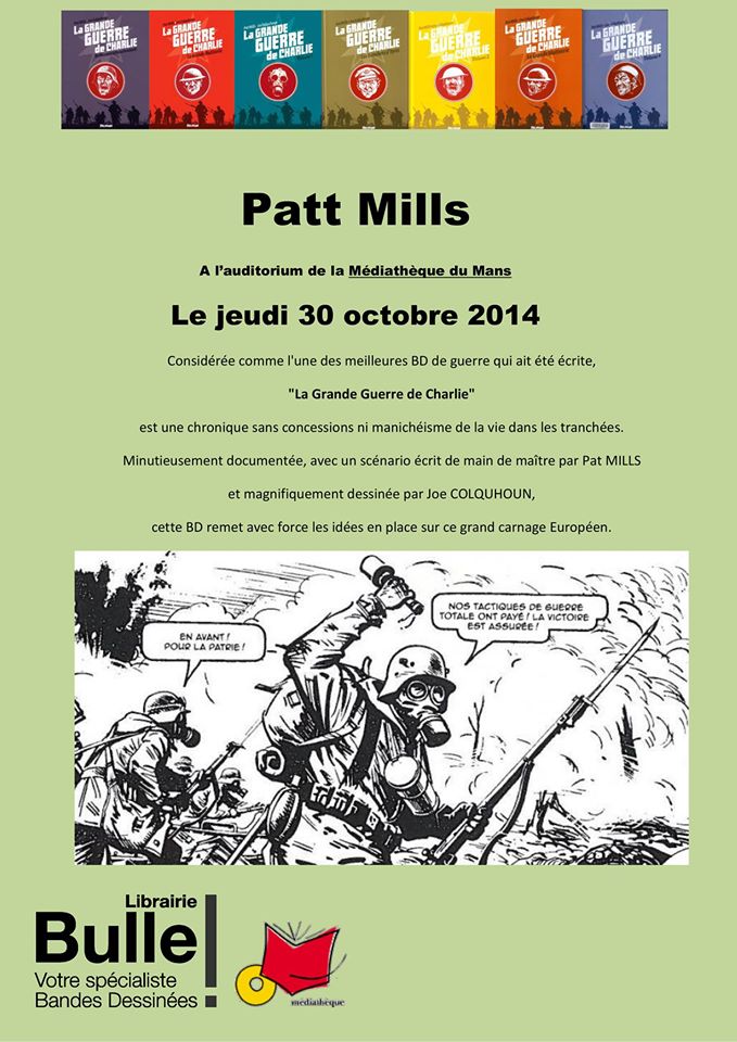 - Le 16 Octobre: Vernissage de l'exposition "CHARLEY's WAR" au Musée de la Grande Guerre de Meaux. Une sélection de planches originales sera visible pour la première fois en France, mises en scène au sein des collections permanentes du Musée et en lien avec les thèmes de chaque pièce! Pat Mills sera également présent et accessible pour des rencontres presse et public, ce même jour. Vous êtes évidemment cordialement invités au vernissage de l'exposition, et je vous serai reconnaissant de me confirmer votre venue!