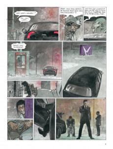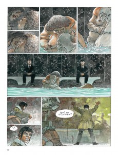 Pour sa nouvelle collaboration avec son fils Yves, Hermann, consacré par le Grand Prix d'Angoulême 2016 pour l'ensemble de son oeuvre, nous plonge dans la noirceur d'un monde dépossédé de son humanité. Avec le style puissant et les couleurs denses qui ont fait sa renommée, l'auteur nous livre un thriller à l'ambiance sinistre et aux cieux opaques, où le malaise guette à chaque coin de page.