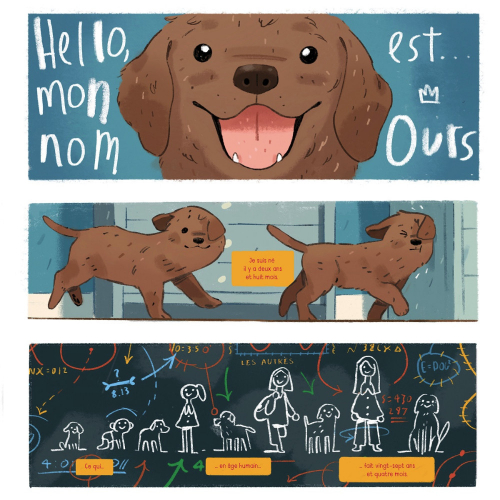 Grâce au dessin rond et expressif de Joe Todd-Stanton (La famille Vieillepierre chez Sarbacane), le périple de l'animal émerveille autant qu'il inquiète. Attachant et naïf, Ours se laisse guider par ses rencontres allant de surprises en déconvenues. Lors de son périple, le héros à quatre pattes devra s'appuyer sur ses autres sens et son flair (!) pour se sortir des situations pour le moins compliquées dans lesquelles il se retrouve embarqué. La mise en image de la cécité est l'une des franches réussites du titre. Avec beaucoup de créativité, le dessinateur représente les sentiments et les sensations que traverse le chien. L'histoire de Ben Queen profite d'ailleurs à plein des circonstances, tant son scénario joue de ces décalages entre les perceptions et la réalité.