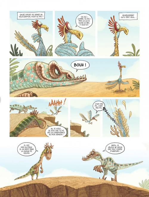 éloce a peur de tout. C'est embêtant, pour un vélociraptor. Il devrait inspirer la terreur au lieu de trembler devant les moustiques. Et voilà que d'étranges boules de feu tombent du ciel. De minuscules mais prétentieuses créatures se réjouissent parce qu'elles sont persuadées que l'ère des dinosaures, ces lourdauds mal évolués, touche à sa fin. Impossible ! Mais qui pourrait en savoir plus ? Un nom s'impose : Anky, le plus sage et le plus réfléchi des ankylosaures. Lui saura ! Un voyage dangereux commence pour le jeune saurien, auquel se joignent Stégo le stégosaure, Horna le tricératops et bien d'autres amis rencontrés sur la route.