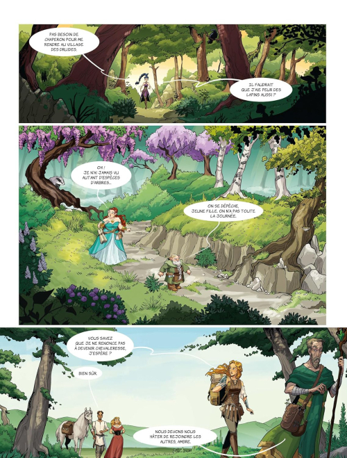 onvergeant vers un village niché au cœur de la forêt sans fin, Ambre, l’humaine qui se rêve chevaleresse, Morgane, la fée liée aux végétaux, et Gwenvyvarielle, l’elfe bonne vivante, doivent y être formées comme druydesses. Appelées à succéder au plus vite aux membres du Cercle du Chêne, volatilisés, elles ont du pain sur planche. Mais leur apprentissage commence à peine qu’il est troublé par une incursion d’affreux gobelins mandatés par la terrible Ygairne pour détruire les lieux. Le trio va devoir coopérer pour repousser l’ennemi. Et ce n’est là qu’une des surprises que leur réserve le vaste bois.