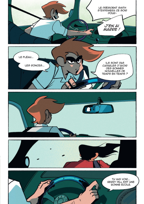 Manga, cartoon et un soupçon de jeux vidéo, sans oublier l’ombre invisible de Brian O’Malley (Scott Pilgrim), la mise en images ne dépote pas moins et fait même tourner la tête par moments. Ça n’empêche pas le dessinateur de très bien tenir sa barque. Le récit avance constamment, s’enrichit et apporte son lot de surprise et de rebondissements.