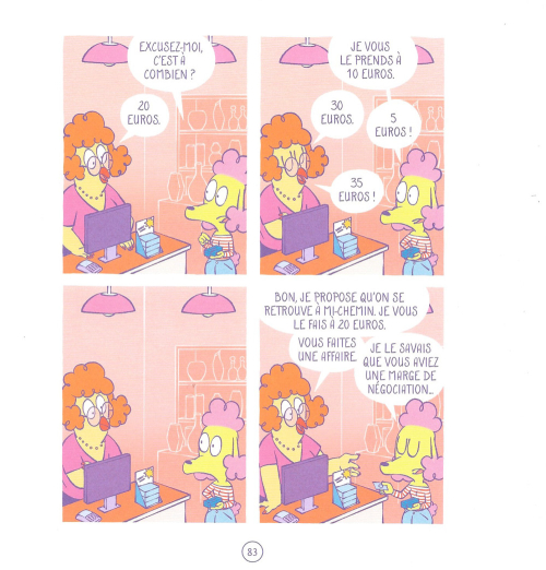 Les gags se suivent mais ne se ressemblent pas. Tour à tour, l’auteur de Garçons manqués verse dans l’absurde, le jeu de mots bien senti ou le comique de situation. Il s’autorise aussi quelques sorties plus engagées, généralement teintées de politique ou de féminisme. La légèreté, qui se traduit notamment par les choix graphiques, l’emporte néanmoins systématiquement et l’ouvrage se déguste sans aucune prise de tête.