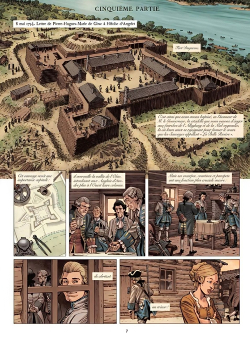 Si la lettre excelle, le trait ne demeure point en reste, et Monsieur Guérineau nous gratifie de planches qui, sans donner dans le réalisme de Monsieur François-Nicolas Martinet, invite cependant notre esprit à vagabonder dans nos terres canadiennes ou à deviner, sous les masques de circonstance (qu’ils soient de bois ou de poudre), la bonté des uns comme la fourberie des autres.