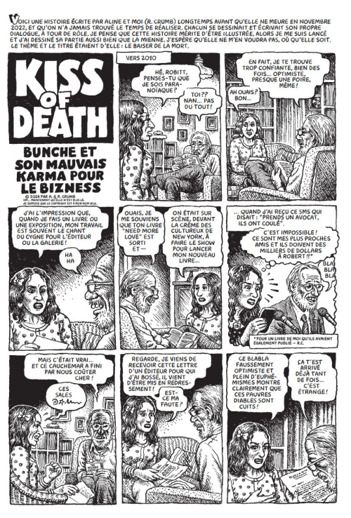 Au final, l’impression qui ressort de l’album est celle d’un homme maintenant âgé, qui a perdu des proches (cf. le très beau et touchant ultime récit coécrit avec Aline Kominsky) et qui se demande ce qui vient après. Un Monsieur Tout-le-monde qui a peur et qui ne peut s’empêcher de se poser LA question ultime.