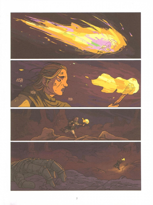 Écrit et dessiné à quatre mains par Élodie Portela Vidal et Quentin Rigaud, l’album adopte une narration fragmentée, faite de silences, d’ellipses et de moments suspendus. Tandis que leur réalité est en pleine évolution, ces aventuriers, désireux de retrouver leurs anciennes vies, semblent cheminer à contre courant de la faune et de la flore qu’ils subissent littéralement. Ils paraissent entravés par une force invisible, incapables de se détacher de leur passé encore très présent. Cette impression est renforcée par le graphisme, où les deux styles se complètent avec justesse. Les deux auteurs privilégient les respirations et les contemplations, donnant une place importante aux plans élargis et aux regards souvent figés ou perdus, qui traduisent l’isolement et la sensation de désarroi. Le découpage des planches accompagne cette suspension, accentuant les instants muets et laissant le temps au lecteur de s’immerger dans l’univers proposé, qui peut surprendre au premier abord. Ici, le trait sert avant tout le propos, traduisant sans mal l’état d’errance des personnages.