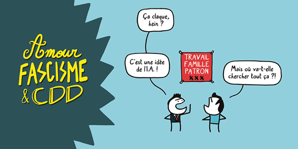 Ce qu’il faut d’humour «corporate» en guise de cadre, un immense jeu de massacre désespérément hilarant et une mise en images minimalistes pleine espièglerie, Amour, fascisme et CDD est à prendre tel quel : un constat dramatique, un manuel de résistance ou une sombre farce annonçant des lendemains pas moins inquiétants.