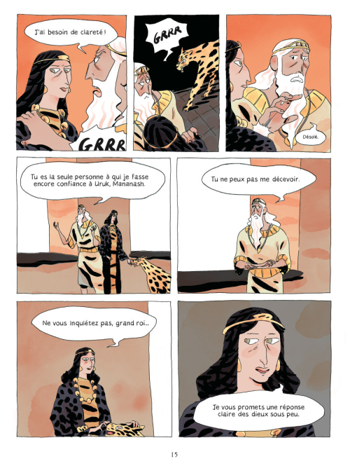 Revenons à nos héros. Avant tout, ils s’avèrent être profondément humains, dans leurs désirs, leurs qualités et leurs défauts. Anzi est un rêveur qui a le malheur de succomber à Siskur (qui préfère les filles), alors qu’il est promis à Gim. Gilgamesh a perdu depuis longtemps Enkidou, son âme sœur, et ne peut plus compter que sur lui-même. Quant à Mananash, la grande prêtresse, elle a beau posséder beaucoup de pouvoir, ça n’est jamais suffisant pour son père. Le patriarche lui reproche continuellement l’absence d’un petit-fils.