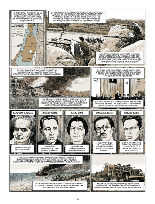 En 2024, suite aux évènements du 7 octobre 2023, le militaire et historien Michel Goya publie un ouvrage sur la guerre opposant Israël et Hamas. Il s'appuie sur différents travaux qu'il a menés portant sur les conflits précédents dans cette région. L'auteur va au-delà de la simple dimension politique pour décrire l'évolution des méthodes et des pratiques de lutte adoptées de part et d'autre depuis l'évacuation de la bande de Gaza par l'armée israélienne. L'essai est dense et riche en informations, mais cela n'a pas empêché Florent Calvez de le transformer, de prendre quelques libertés sans le trahir. L'auteur remonte le temps afin de faire comprendre les racines des conflits israélo-arabes et leurs conséquences sur le long terme. Les cartouches de textes sont assez longs par moments mais nécessaires pour parvenir à retracer près de cinq siècles de contexte sans pour autant assommer son lectorat: un tour de force à saluer. Sous la forme d'une conférence dessinée, chaque chapitre se termine par un retex (retour d'expérience) de Michel Goya qui vient compléter et densifier des éléments lus précédemment.