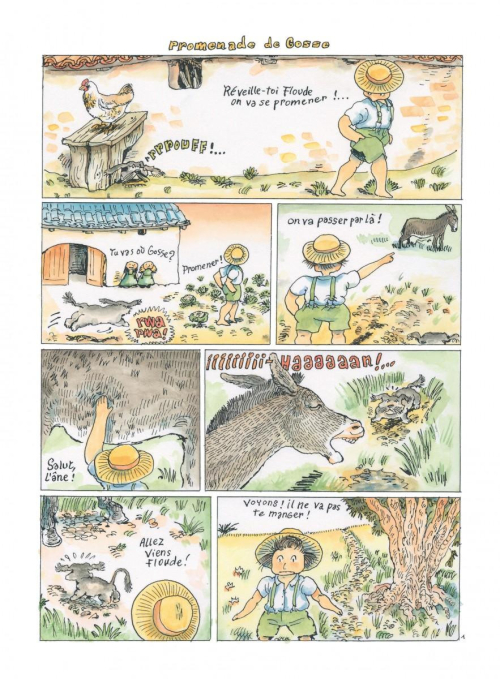 Gosse et les berges, le premier tome de cette série jeunesse rétro avait permis à Lucas Méthé d’introduire Gosse, un petit gamin sympathique, flanqué de Floude, son chien fidèle. Quelques péripéties amusantes présentaient son univers situé en Drôme, en bordure du Rhône et face à l’Ardèche. Le second volume, Gosse et son ami Taigne, voyait ce duo à la vie et à la mort remonter le fleuve jusqu’à Lyon. Il est donc logique de voir le héros prendre la direction opposée pour sa troisième aventure. Le Sud, l’embouchure dans la Méditerranée et, après une courte halte à Marseille, une île (quasi-)déserte va servir de cadre à un récit rempli de risques et de rebondissements.