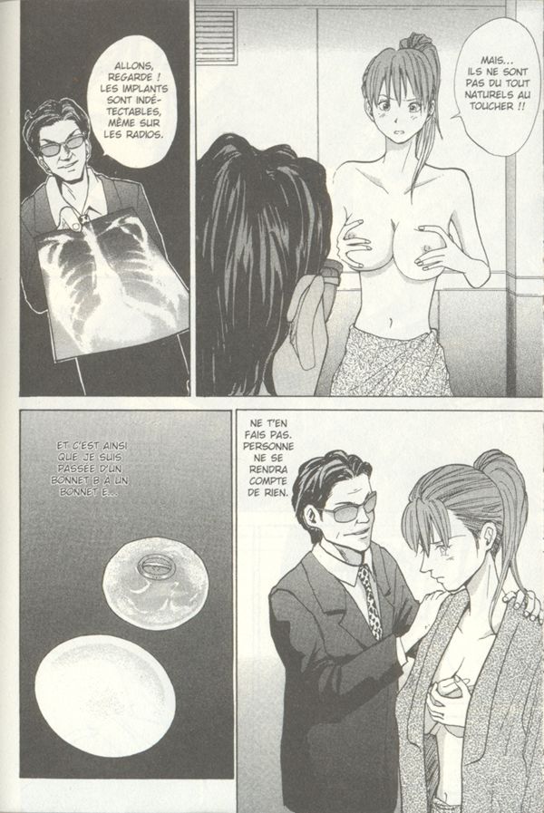 Les amateurs de la série télévisée Nip/Tuck ne seront pas dépaysés avec Skin. Silicone, scalpel, implants en tous genres et recherche de la beauté sont au programme de ce manga, sans oublier l’éthique et les tarifs onéreux. L’air de rien, Kouji Hayashi, le scénariste, ne fait pas dans la dentelle en présentant un personnage principal pour le moins cynique, provocateur et s’encombrant peu des questions morales. Pourtant, au fil de l’album, Takashi Sakisawa se révèle moins antipathique qu’il y paraît. Noceur, habitué des bars à hôtesses, en apparence peu scrupuleux, il n’envoie des piques acérées que pour inciter ses vis-à-vis à réfléchir et, au final, à mesurer réellement leur choix : celui de changer une partie de leur corps. Par ailleurs, ses joutes verbales avec Mami, tout en reprenant l’éternelle lutte entre beauté intérieure et apparence physique, suscite aussi la réflexion et cerne, sans aménité, quelques adages sans cesse serinés - de préférence à celles qui ne sont pas des canons. Le dessin de Kunihiko Nakai est, quant à lui, bien léché, réaliste et reprend de nombreux stéréotypes graphiques. Les filles aux mensurations de rêves ont la part belle, mais c’est surtout la désinvolture avec laquelle Takashi les palpe ou marque leur peau qui retient l’attention.