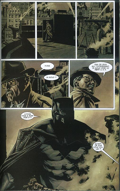 Les flashback sont fréquents mais comme aucun détails visuels ne permet de les repérer sans effort la lecture est vite pénible. Je ne crois pas que le format (couverture cartonnée rigide, papier de qualité) et donc le prix soit justifié par rapport a l'histoire un peu faiblarde. Même fan absolu du Batman je ne sais pas si je vais garder de la place pour ce volume.