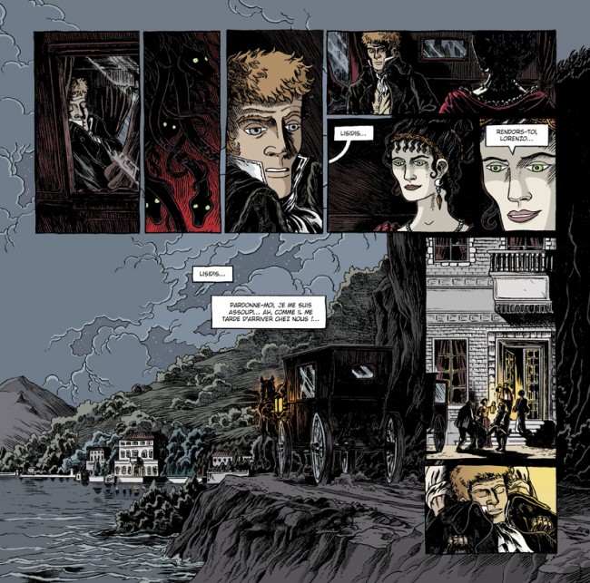 Comme la plupart des titres de la collection Carrément BD, cette adaptation d’une nouvelle de Charles Nodier, auteur méconnu du début du XIXe siècle, est avant tout une œuvre graphique. Dans un style qui lui appartient et rappelle ses précédents travaux, Patrick Mallet offre des planches à la fois majestueuses et oppressantes. Sa représentation des démons, quittant les plans infernaux pour s’en prendre aux âmes égarées, est tout bonnement hallucinante, brillante de créativité et propre à susciter l’effroi. Accompagnant un texte d’un autre temps, aux accents littéraires très prononcés, le dessin participe donc à l’aspect mythique d’un récit qui semble avoir été conçu pour être déclamé d’une voix haletante et empreinte de mystère.