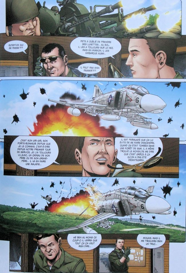 Quel album franchement ennuyeux ! Certes, il s'agit encore d'une histoire de pilote d'avion de guerre. On n'en retiendra pas grand chose au final. Un ancien pilote des marines raconte ses exploits au Viet-Nam alors qu'il est mourant. Il y a un parallèle qui est effectué par l'auteur entre la situation en Irak et celle du Viet-Nam alors que ces deux conflits semblent bien différents sauf à faire de l'amalgame à tout prix. Et puis, les traumatismes de la guerre du Viet-Nam ont déjà été maintes fois évoqués.