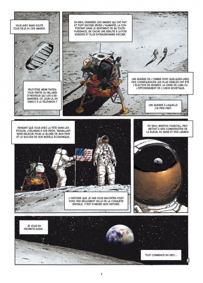 C’est intéressant de voir combien que l’histoire de la conquête de l’espace n’a pas été aussi simple que cela. Le lecteur découvrira les histoires cachées derrière chaque exploit technique. Ce premier tome donne l’avantage aux soviétiques avec la mise en orbite du premier satellite humain à savoir Spoutnik alors que le monde occidental croyait être en avance de plusieurs années. On sait par avance que les américains combleront leur retard puisqu’ils seront les premiers à envoyer des hommes sur la Lune. Certes, mais c’est toujours bien de revivre ces moments d’anthologie pour les amateurs de l'espace.