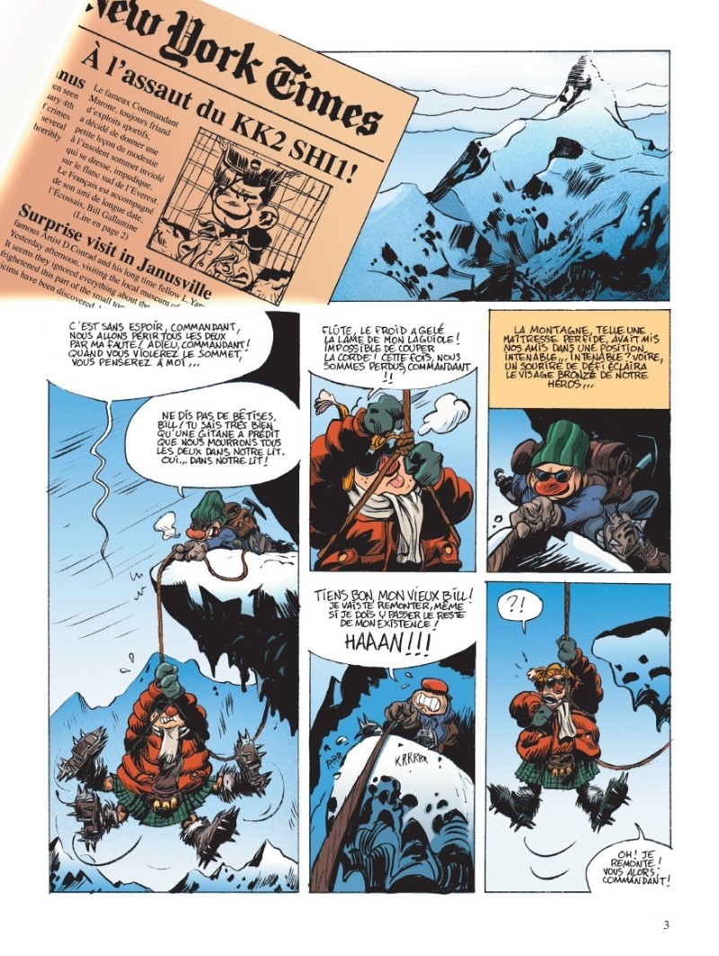 Si elles sont indispensables pour les aficionados du Commandant et des auteurs mythiques (pour certains) que sont Yann et Conrad, ces nouvelles histoires ne séduiront pas forcément tous les publics. La faute, en premier, au format des récits courts qui souffrira la comparaison avec les albums précédents. Ces derniers avaient une cohérence et une densité propres aux quarante-sept pages. Le scénariste et le dessinateur avaient pu y développer en toute quiétude leur propos. Il est flagrant de voir ici comment les six ou sept pages qui composent chaque chapitre réduisent le champ d’expression des intervenants. Chacun a un côté « résumé contraint » d’une intrigue qui aurait gagné à s’établir sur du long terme. Sur le plan graphique, Yoann semble aussi prisonnier du mode de travail. Limité par le découpage rigoureux de Conrad, il ne s’y exprime pas aussi librement que dans ses productions de l’époque.