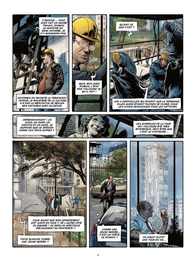 La malédiction de la Tour Saint-Jacques ouvre une série visant à narrer diverses légendes ayant pour cadre la Ville Lumière. Dans ce premier tome, Jean-Pierre Pécaud (L’homme de l’année – 1917, Arcane majeur, L’histoire secrète) lance rapidement les éléments qui initient l’intrigue, avant de présenter les protagonistes et de développer son récit autour des morts mystérieuses qui se multiplient dans le IVème arrondissement.