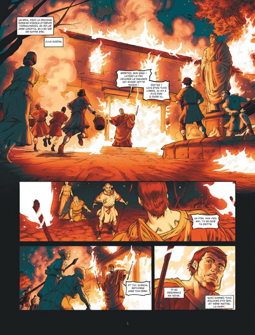 Après deux tomes qui s’apparentaient à une longue introduction, avec un héros subissant malheur sur malheur, le récit prend un tour nouveau. Les éléments distillés précédemment se rejoignent au sein d’une trame qui explore les dessous des célèbres jeux du monde romain, qui, s’ils ont bien entendu pour objectif de satisfaire le peuple, cristallisent aussi des enjeux politiques et de luttes de pouvoir. Ils peuvent ainsi voir des positions se faire où se défaire au gré des résultats des courses qui enflamment les passions. Soutenue par un graphisme qui sacrifie la précision du détail au profit d’un dynamisme et d’une fluidité bienvenus compte tenu du rythme, cette histoire se laisse parcourir agréablement. On regrettera seulement que les personnages soient dans l’ensemble un peu trop stéréotypés.