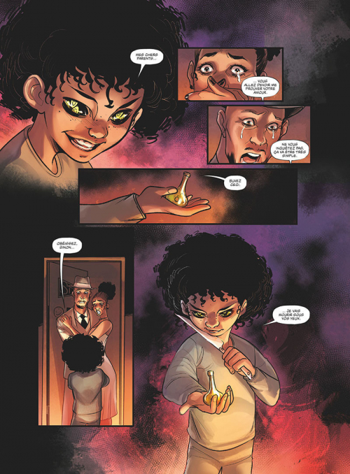 Je n'ai rien à redire sur le graphisme qui fait très comics ainsi que sur le découpage plutôt dynamique de ce récit. Il me manque seulement l'envie de continuer tant les ingrédients sont déjà vus avec cette surdose de situations improbables. Si encore, on s'attachait à l'héroïne mais celle-ci semble surfaite. Les clichés sur fond de satanisme se multiplient. Il reste néanmoins un très agréable dessin qui remplit sa quote-part.