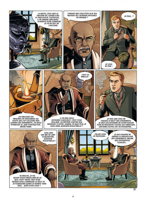 Le dessin de Christophe Picaud est généralement heureux. Son fantôme se montre particulièrement convaincant et le jeu des acteurs est juste. La visite des toits de l’édifice de style impérial se révèle agréable, tout comme celle de ses terrifiants sous-sols imaginaires. La salle de spectacle et le grand escalier laissent toutefois le lecteur sur sa faim. Adoptant un registre réaliste, l’artiste n’arrive pas tout à fait à restituer la splendeur de ces décors foisonnant de détails. La composition des pages est dynamique, quoique par moments chargée, d’autant plus que certaines cases, très sombres, reposent sur un fond noir ; il s’avère de ce fait parfois difficile de voir où commencent et se terminent certaines vignettes.
