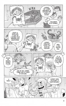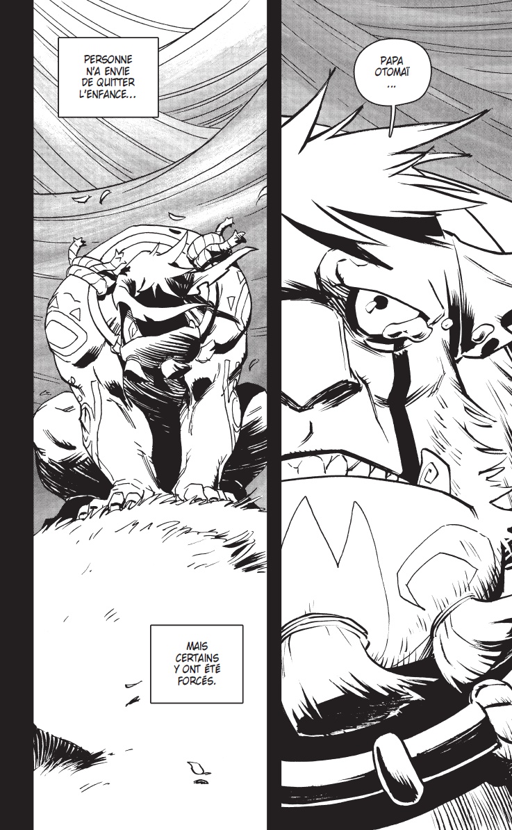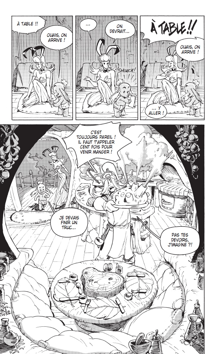 Pas vraiment, j’ai toujours aimé multiplier les expériences graphiques et narratives. Après mes deux séries chez Grand Angle, j’ai fait beaucoup d’histoires courtes dans des collectifs, le magazine S & V junior, le collectif JukeBox (édition Vanille Goudron) ainsi que chez Ankama et d’autres maisons d’éditions. Je testais les formats, les techniques et les styles. J’ai déjà eu l’occasion de travailler le manga avec le volume 7 de la collection Dofus Monster : Zatoïshwan. Mais j’avoue que le plus difficile, c’est de revenir au format 46 pages !