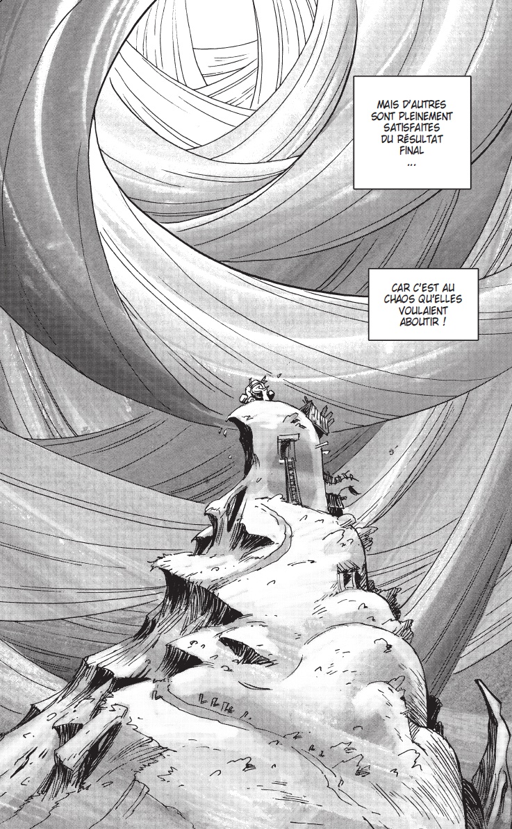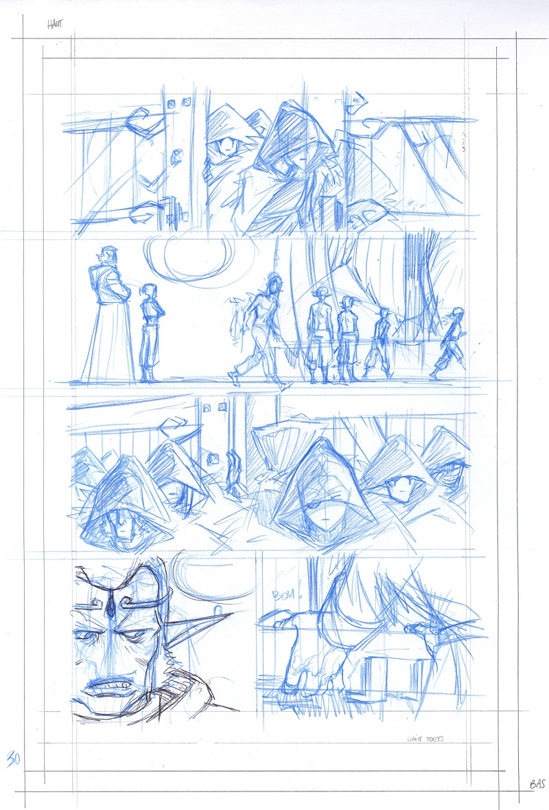 Quatre assistants trames, deux pour la maquette… Que vous apporte le travail en équipe ?En fait, toutes ces personnes m’ont aidé pour le bouclage de fin qui n’en finissait plus. Si je ne les avais pas eues, je ne sais pas dans quel état je serais à l’heure actuelle ! Car je travaille seul sur cette série. Le manga en France ne bénéficie pas de la structure du Japon. (Les tirages là-bas sont monstrueux et les assistants formés et prêts à s’adapter sur tous les projets sont légions). Je travaillais comme un fou, de 9h à 2/3h du matin sur les deux derniers mois, avec très peu de pauses, pendant une longue période. Même comme ça, je n’arrivais pas à faire tout ce que je voulais dans une journée. Je tenais absolument à sortir le tome 1 pour la Japan Expo. Cette forme de récit se démocratise de plus en plus en France, et à l’image des studios que nous pouvions trouver dans la BD Franco-Belge, il n’est pas impossible qu’un jour on en trouve pour le manga, avec des assistants qui pourraient se former auprès des auteurs.