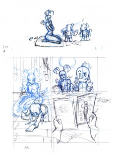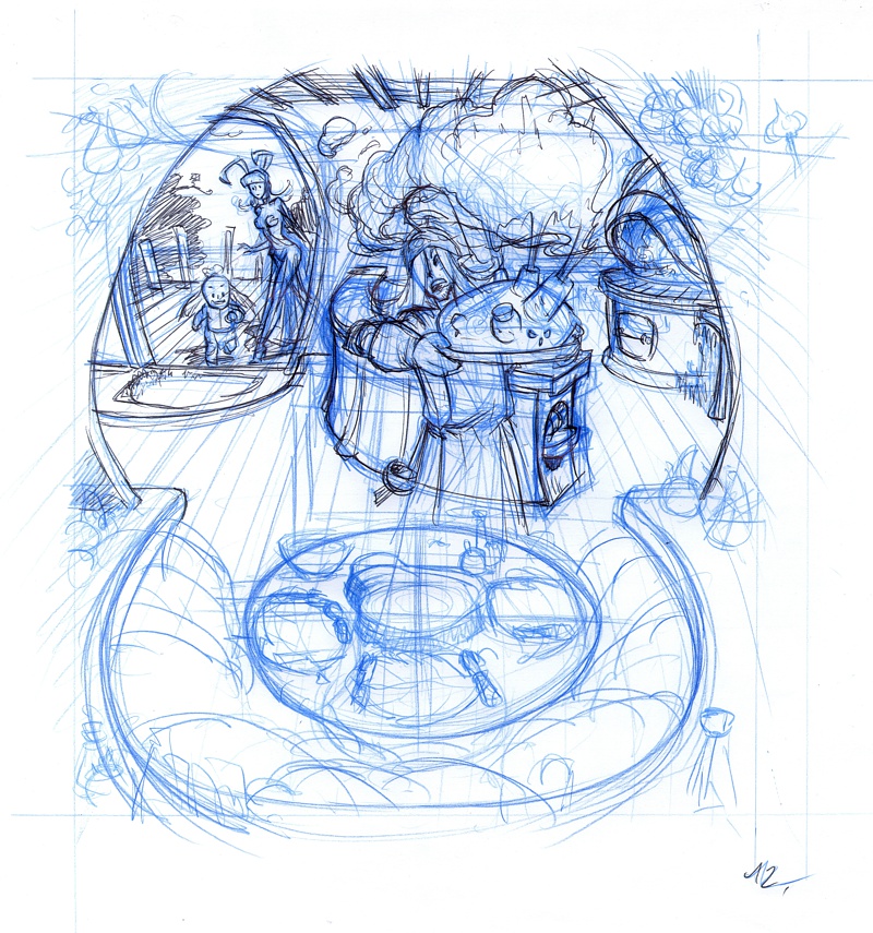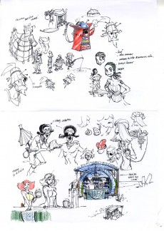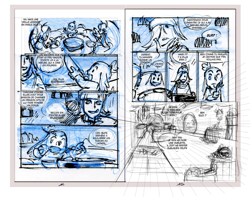 J’ai toujours des idées en vrac que j’ai pu soit écrire, soit poser sous forme de croquis. Nous avançons aussi en fonction de l’évolution du jeu et des animés, ainsi que des discussions avec Elise. J’ai dans mes tiroirs un épisode de Goultard, autre personnage charismatique de l’univers de Dofus, sorte de Conan le Barbare à la sauce Ankama. Pour l’instant je ne sais pas quand ni comment je pourrais caler cela, mais j’ai quelques recherches qui m’ont donné envie d’en faire plus !
