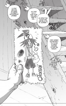 Le petit livre oublié sur un banc à Ogrest ? J’ai travaillé sur « le petit livre» avec mon instrument préféré : le pinceau. J’ai allégé mon encrage en éliminant les masses de noir pour laisser de la place aux couleurs lumineuses de Delphine. J’ai effectué un tas d’études sur les expressions corporelles et faciales, afin de jouer pleinement les émotions de Camélia et de son entourage. Tout ceci m’a beaucoup apporté et a influencé mon travail sur Ogrest. Au niveau technique, j’avais commencé les planches avec différents feutres noirs, mais je n’étais pas satisfait du résultat. Je suis revenu à la plume et au pinceau (depuis le temps que je les utilise, je suis plus instinctif et plus rapide !). Le fait de mettre en image mon propre scénario me permet d’agir à tout moment pour modifier des choses, que ce soit un dialogue, un cadrage ou le nombre de pages. C’est une expérience plus personnelle, puisque je suis sur tous les fronts.