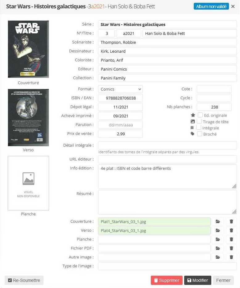 Perso , je télécharge la fiche la plus proche de mon album et je modifie, dans Online, la date d'AI