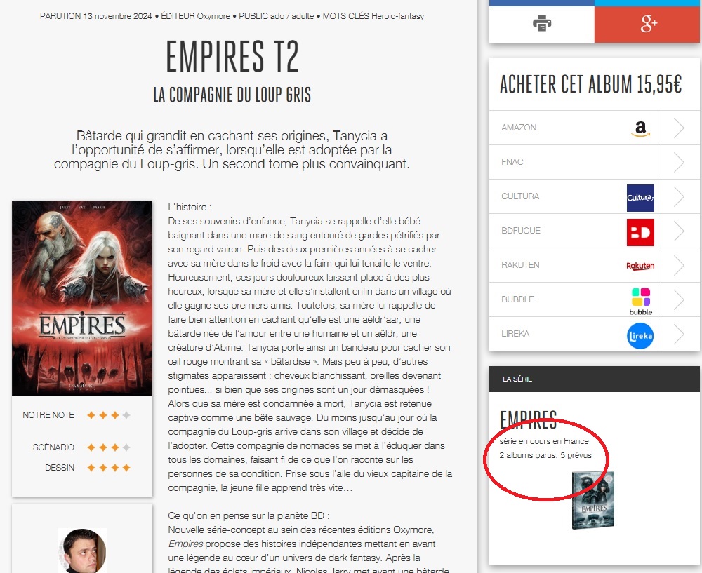 Mais de toute façon la BEL n'a pas à remplacer les éditeurs. Cette info cruciale devrait être facile à trouver sur les sites officiels voir carrément sur la BD elle-même, or ce n'est quasiment jamais le cas.