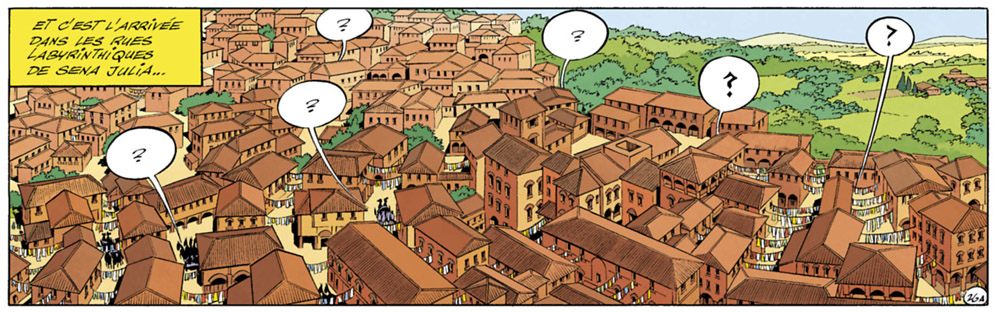 Totalement comme dans les "Alix" d'un des repreneurs, marc Jailloux, qui dessine plutôt bien les visages (c''est à dire à la manière de Jacques Martin) mais se loupe totalement dans les décors qui sont affreux.