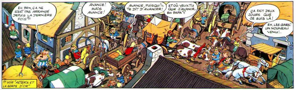 Et ça passe différemment parce que Conrad cadre différemment ses scènes statiques, plus près. (là il y a une grosse différence avec Uderzo).