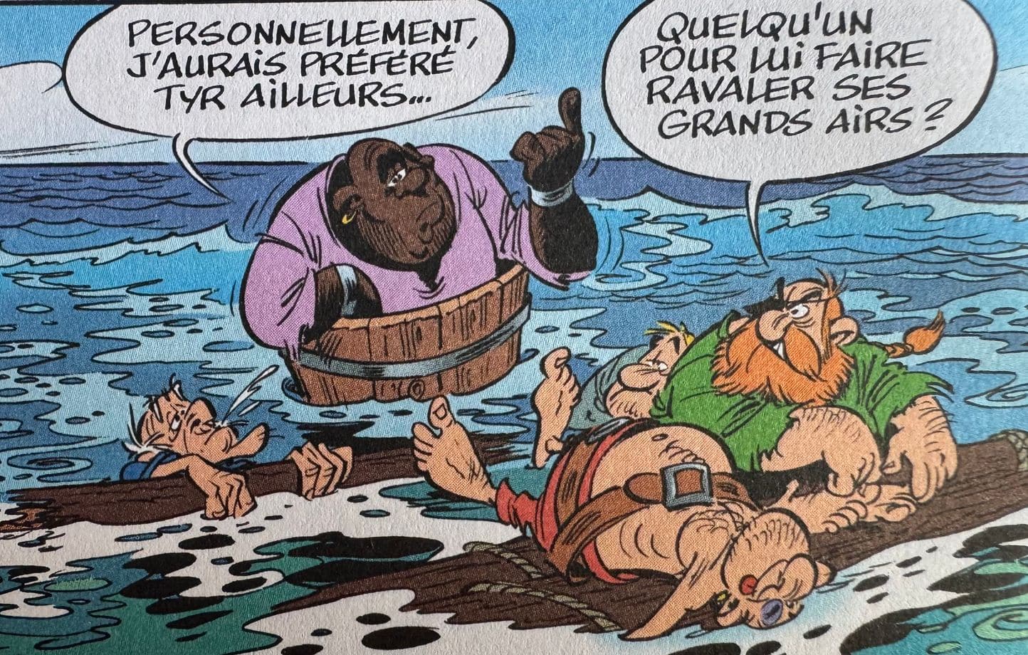 Dans cet album, je me suis un peu inquiété sur ce même phénomène de tristesse apparente dans le gag récurrent du Fado : la tristesse n'était que ponctuelle, dans les chants tziganes d'Astérix en Hispanie. Là, ils auraient pu le répéter moins souvent, et aborder d'autres clichés portugais à la place. Mais globalement, ça passe plutôt bien, et l'équilibre est respecté, je trouve.
