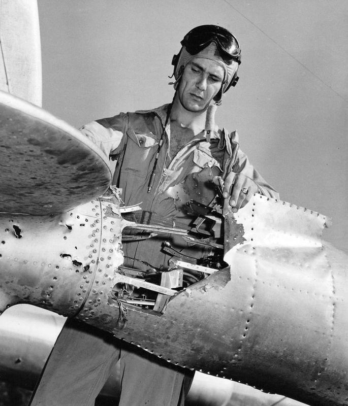 Il passa ensuite au ras du toit plat où se trouvait une batterie de flak qu'il réduisit, au passage, à néant avec ses servants.