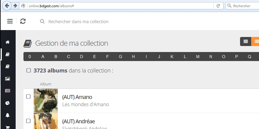 quand je réduis le menu à une barre sur le côté gauche, ma collection s'étale sur la place laissée par le menu. Certaines des cases alphabétiques permettant de filtrer ma collec se retrouvent à cet endroit (les cases 0, A, B et C). Elles deviennent alors inactives, on ne peut pas cliquer dessus alors que les autres cases (à partir du D) restent actives.