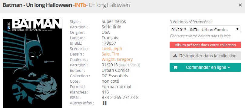 Vous pouvez utiliser gratuitement BDGest Online pour gerer votre collection de BD, comics et mangas.
