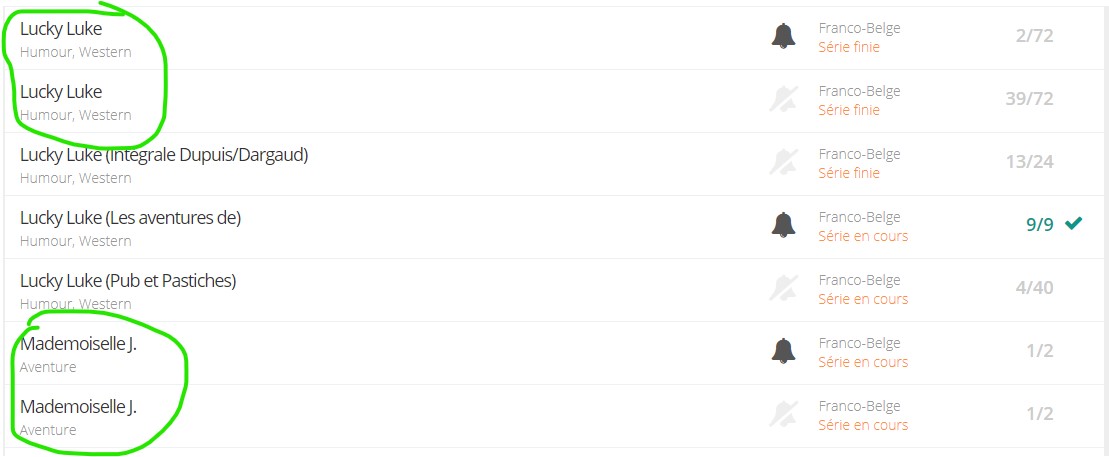 dans BDGEst'7, l'un de tes albums n'est pas attaché à la bonne série par rapport à BDGest online