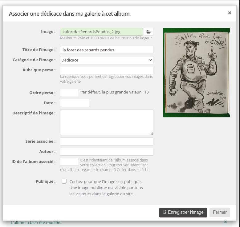 https://www.bedetheque.com/BD-Sales-pet ... -8401.html), il y a plusieurs dessinateurs. Si on recherche sur BDGest Online dans sa collection les albums dessinés par "Robin, Thierry" ou "Gabrion, Pierre-Yves" (etc.), on le les trouvera pas. Le seul moyen de faire apparaître cet album en "recherche" sur le dessinateur est de chercher "<collectif>", parce que ce mot est le premier de la liste de dessinateurs dans BDGest.