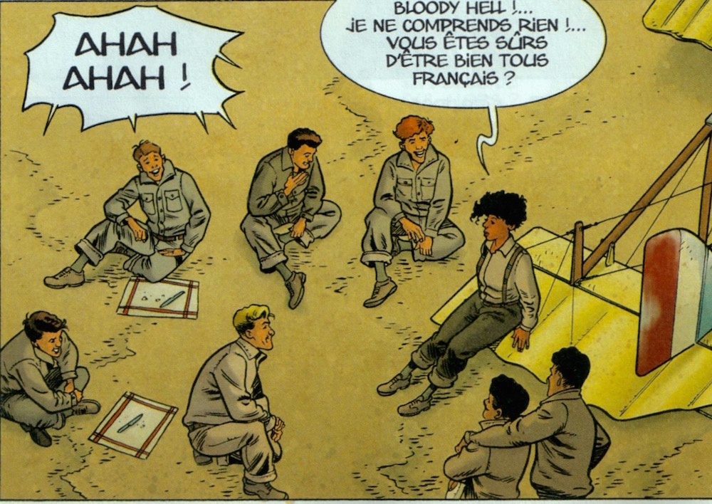 Vivi2 a écrit:En fait, la réponse est dans les photos du dossier qui accompagne l'album: on y voit la véritable Bessie assise sur la queue du même type d'appareil, en 1921. Deux autres élèves sont d'ailleurs appuyés sur le même appareil dont un couché sur la dérive en question.