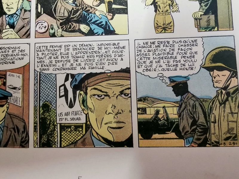 JYB a écrit:Une chose n'a, me semble-t-il, jamais été dite ou écrite, concernant l'album Avions sans pilotes de la série Buck Danny (dont la version Hachette vient de sortir en kiosques, comme je l'ai raconté plus haut). C'est que le lettrage des bulles n'est pas le même qu'à l'origine. Un lettreur a tout réécrit. Voici par exemple un strip de la même planche, dans la version Hachette en haut, et dans la version Spirou en bas :