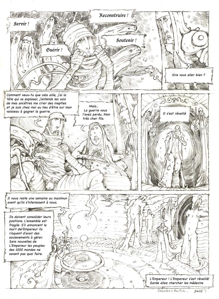 jean.jacques.sanchez a écrit:slt slt .....bon bien c'est vraiment cuit.... j'avais eu espoir de faire la suite de camilo.3 suite a vos encouragement....NIET après tout mes appels et coups de fil silence radio et plus de nouvelle de mon éditeur( ....PAQUET......) je dois me faire une raison il n'y aura vraiment pas de suite a cette série tout comme ma précédent série le maitre des cieux.....suis vraiment maudit. PAS grave car je fais toujours marché mon crayon et ma gomme...je viens de faire avec Tshirt-MAOUT une illustration pour un tee-shirt que j'ai eu la joie de le voir porté par le présentateur télé Philippe Lefévre dans un MONDE de BULLES....pour le reste je travaille sur une bd qui verra bientôt le jour...si vous voulez suivre mes futurs projets et actualités voila mon blog.... http://alienoide.blogspot.com