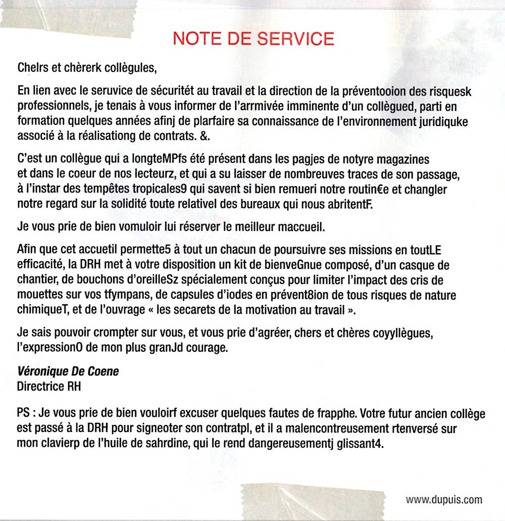 GringoBandito a écrit:La "note de service" est, en effet, une bien piètre tentative de faire du Franquin