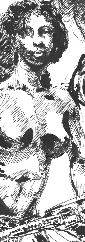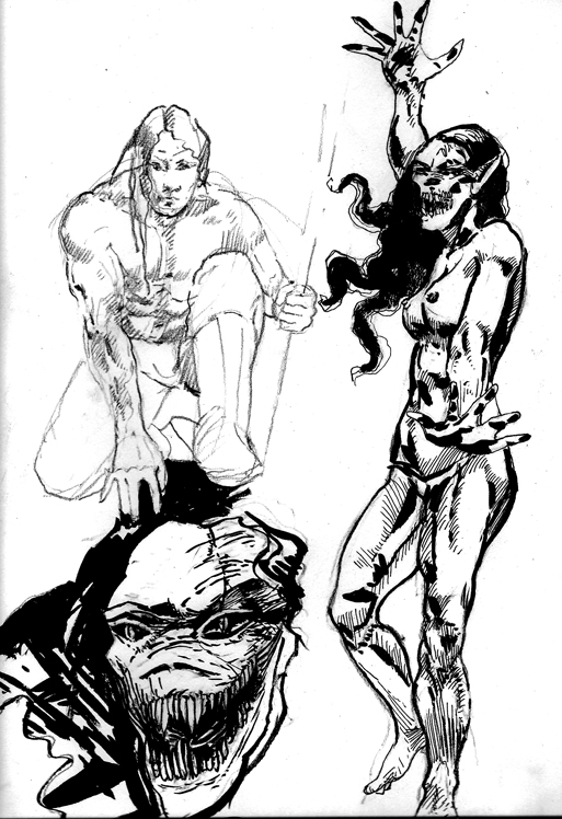 je rien de très aboutis a vous montrer pour l'instant -sauf des esquisses (ci joint ) sur différentes techniques d’encrages - pour l'instant - je ne suis pas décidée sur le style, celle ci dépend du scenario aussi je pense.
