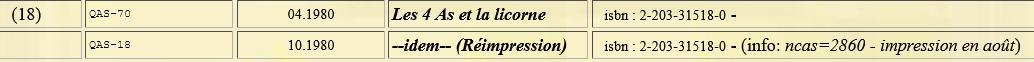 Ce "numéro casterman" à 4 chiffres (puis 5) est toujours au 4e plat au-dessus du code barre.