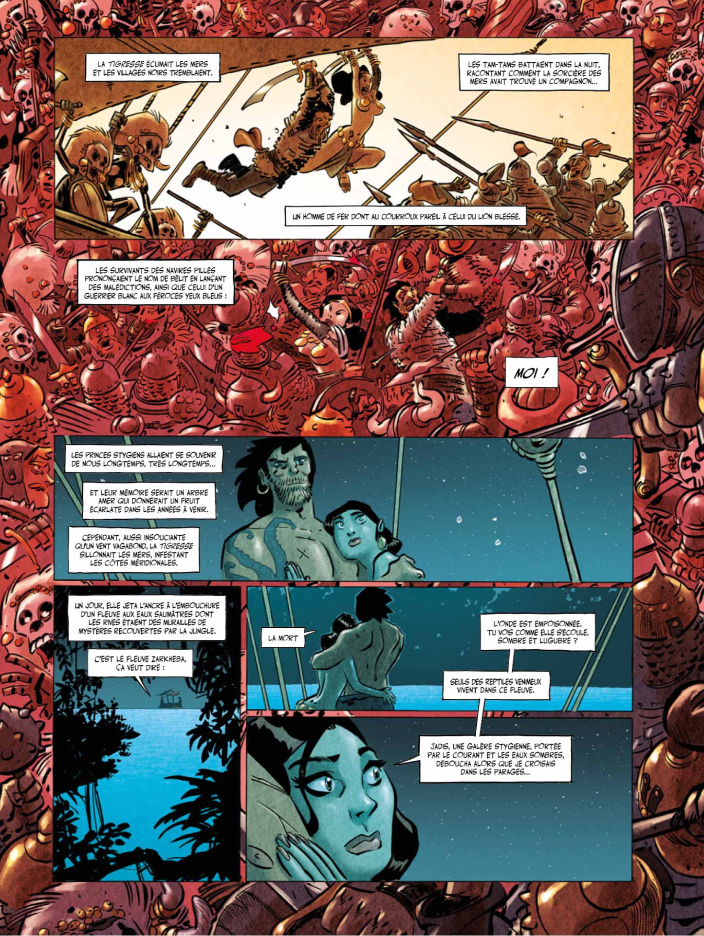 Nous ne nous occupons pas du tout de ce qui a déjà existé en adaptation de Conan. Bien sûr, nous aimons beaucoup de choses mais notre but est de revenir aux textes originels de Howard. Expurgé de tout ceux qui sont revenus sur son œuvre, comme Sprague de Camp. Pour nous, il n'existe pas.
