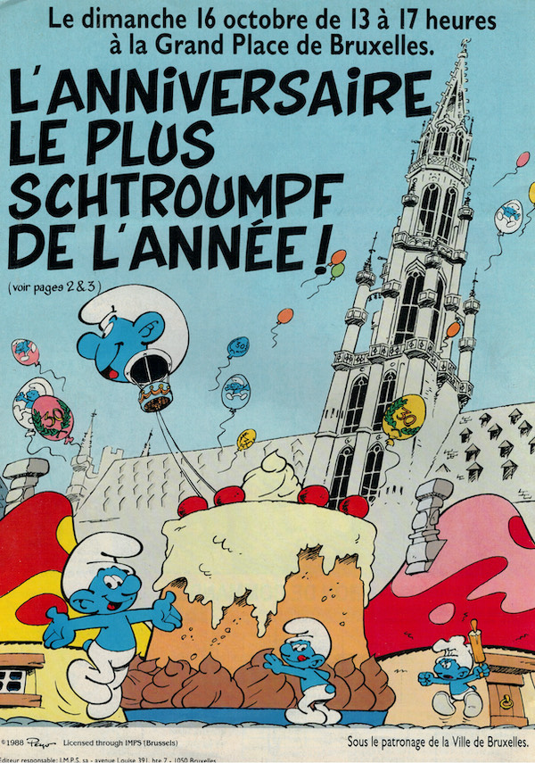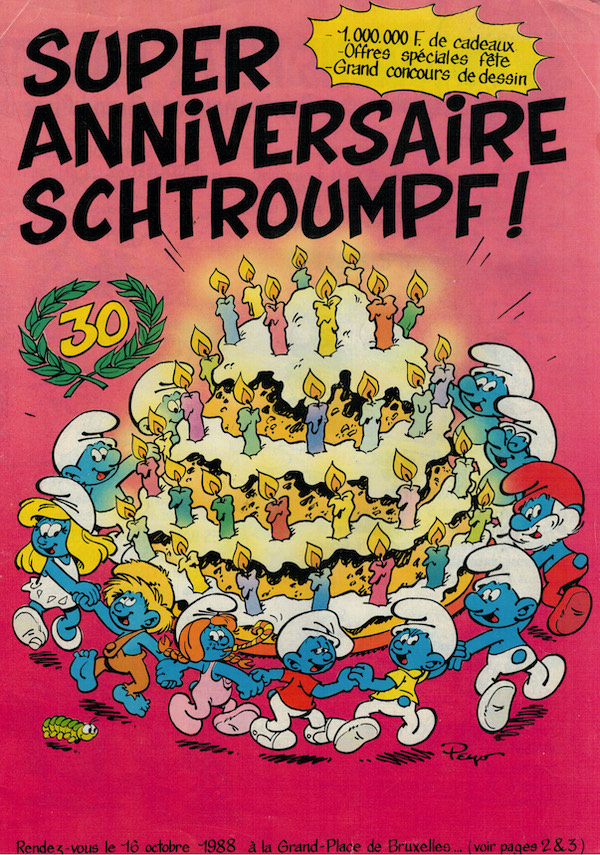 Il s'agit d'un petit journal publicitaire de quelques pages annonçant la fête des 30 ans des Schtroumpfs à Bruxelles en 1988.