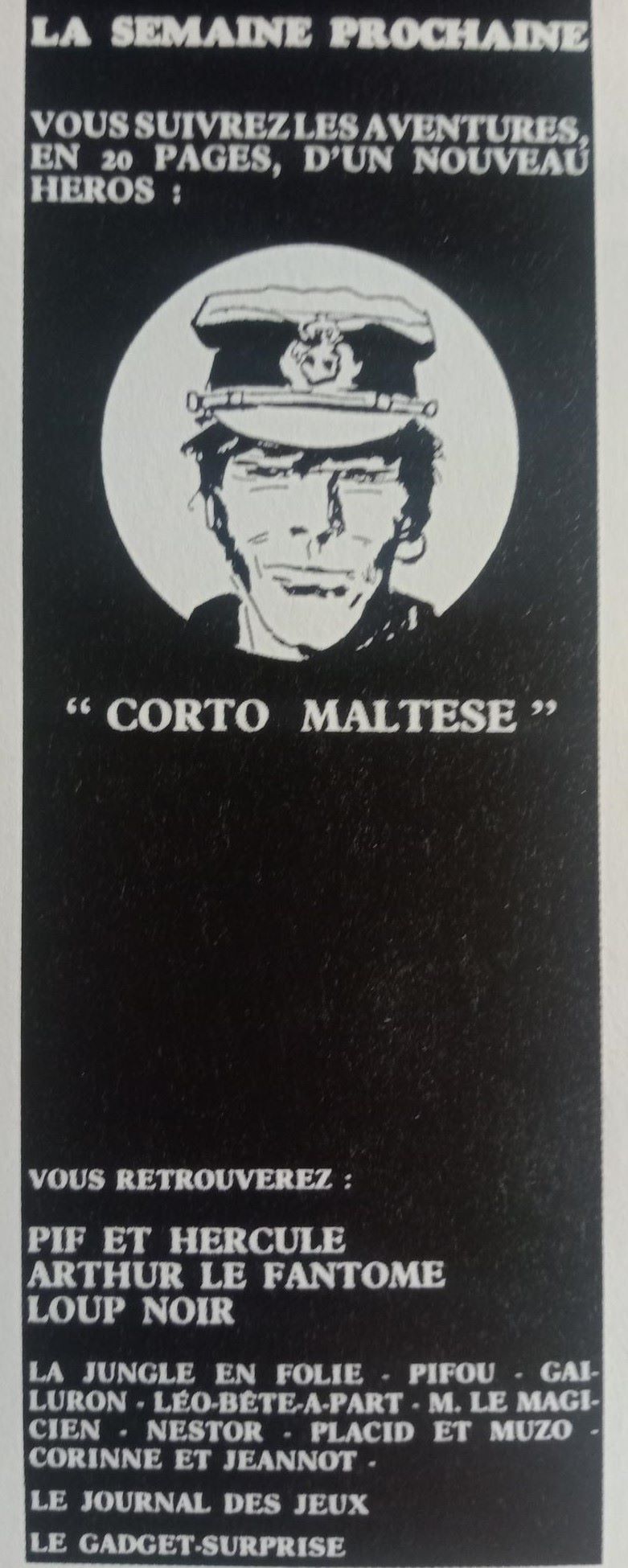 patricelg a écrit:Quand Pif Gadget annonçait l'arrivée de Corto en 1970