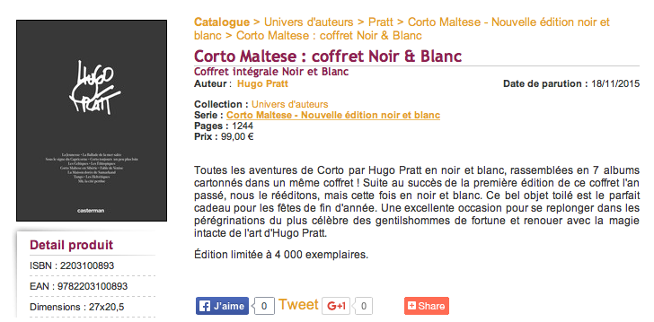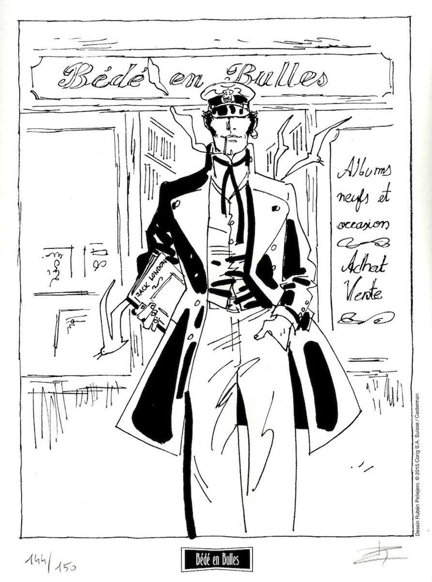 J'en profite pour partager avec vous une représentation de Corto par Pellejero que je trouve parfaite. Normal, il a eu la gentillesse de faire pour moi ce dessin de Corto et quelques mouettes sortants de ma librairie :