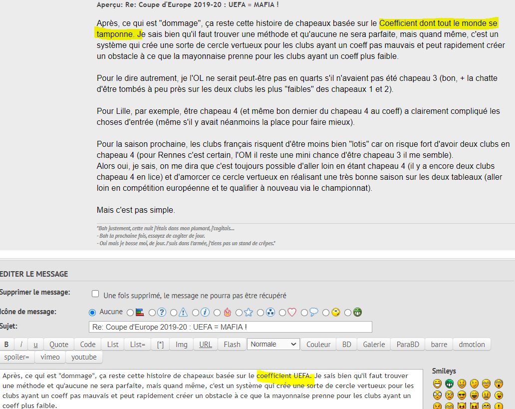 J'ai écrit "coefficient U E F A" et mon message indique "Coefficient dont tout le monde se tamponne" ... alors que j'ai pas écrit ça ...![]()